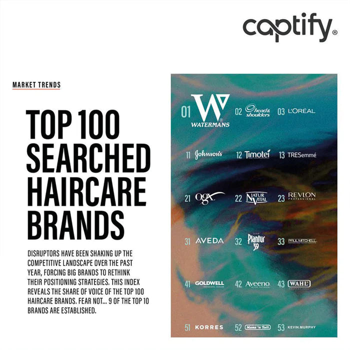 Searching 2.2 billion consumers behaviours over a period of a year. The results show Watermans is the most searched for hair care brand in the World on the Global hair care report by Captify.