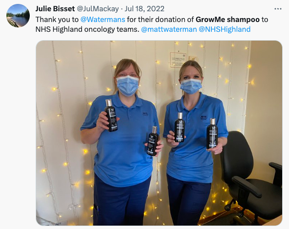We been supplying chemo wards free bottle of Grow Me shampoo since 2014. We love all the positive feedback from the amazing nurses and their brave strong patients. Our shampoo is known throughout chemotherapy wards as Chemo Shampoo