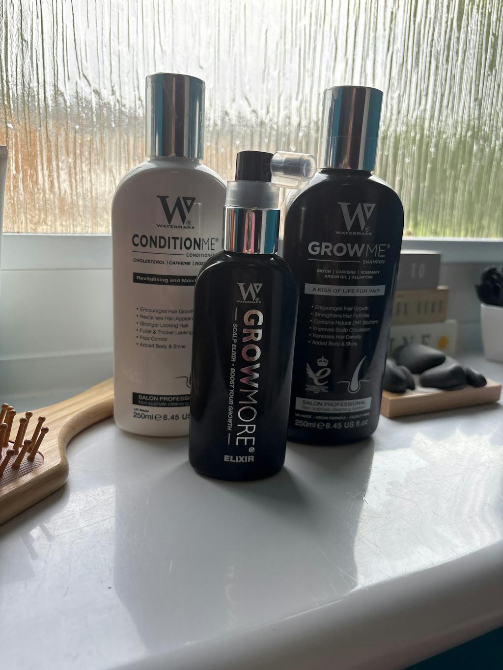 2 years ago I started losing a lot of hair constantly (pre-menopausal) and then I came across a bald patch that grew to about 5 inch x 5 inch right on the parting at the top of my head - I was so distressed - have used watermans shampoo and conditioner ever since - plus prescribed steroid cream for bald patch at the time - I would never use anything else now - it’s expensive at the offset - I buy the big salon size of each and I can honestly say they last me months so when you compare against normal shop bought shampoo and conditioner you will be saving loads in the long run