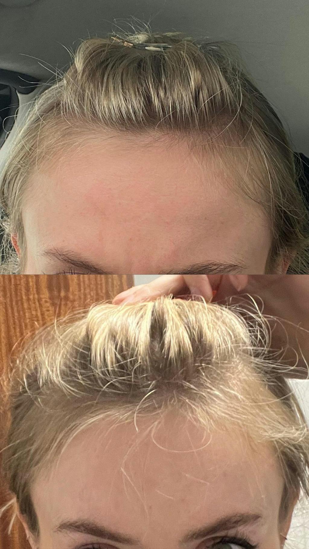 After going through telogen effluvium I lost a lot of hair around the front of my head, and overall thinning. I have been using Waterman's for around 2 months now and the results are incredible. My hair overall feels healthier, stronger and thicker since using it. It’s an absolute miracle. This picture is 3 weeks difference where I have been applying the serum. Thank you Watermans🙏🏻